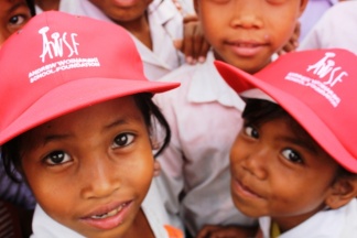 Most of the rest of the afternoon was spent providing moral support for the crew erecting the water treatment plant. In Pakse I had bought a large bag of sweets and I was mobbed by 200+ children when I started to distribute them! I know it was not much of a gift but I thought a small treat on a special day.